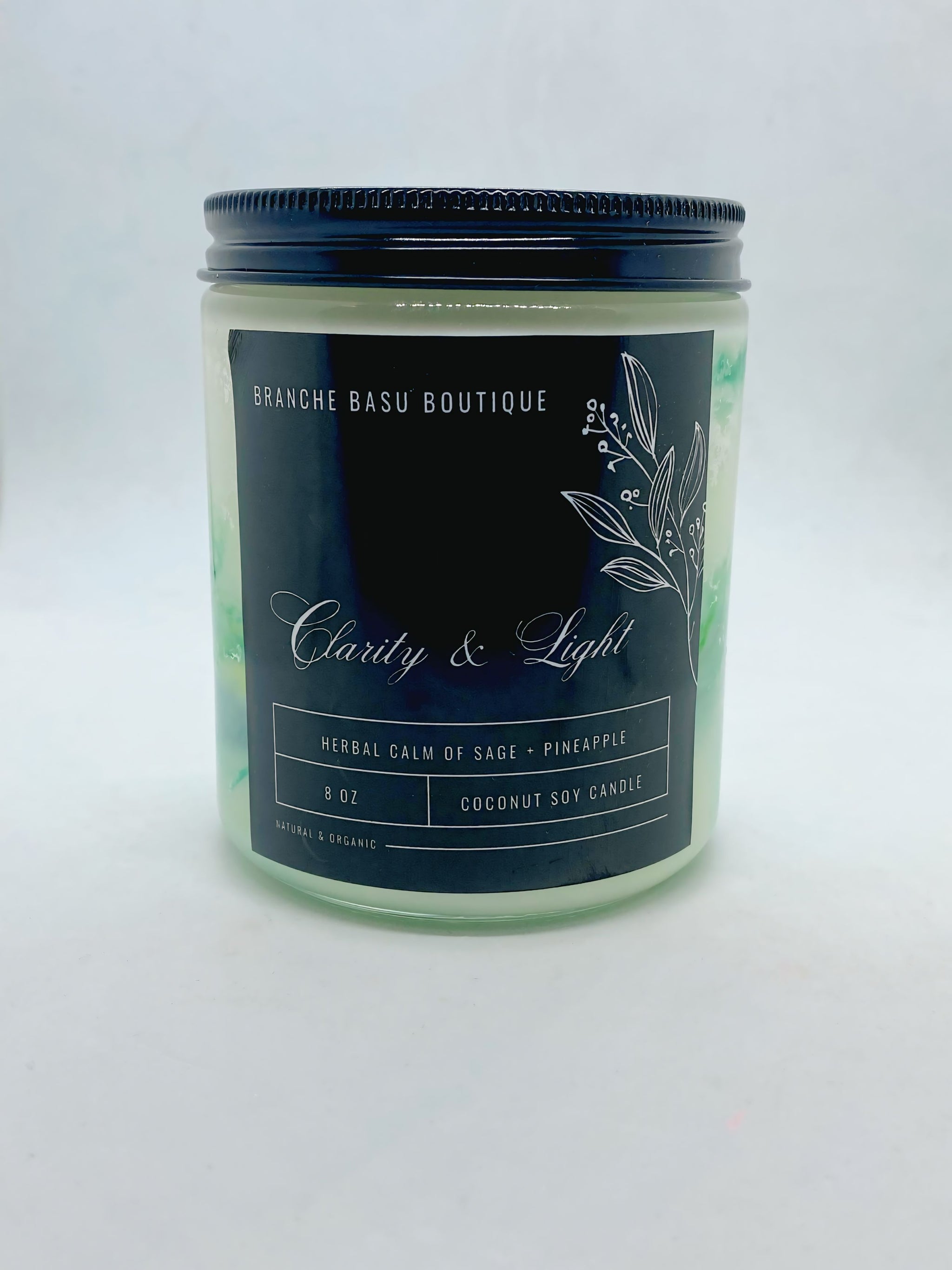 Find your focus, refresh your spirit, and brighten your mood with Clarity & Light, a crisp and uplifting blend of pineapple + sage. This candle was created for the moments when you need to reset, release mental fog, and step back into your power.