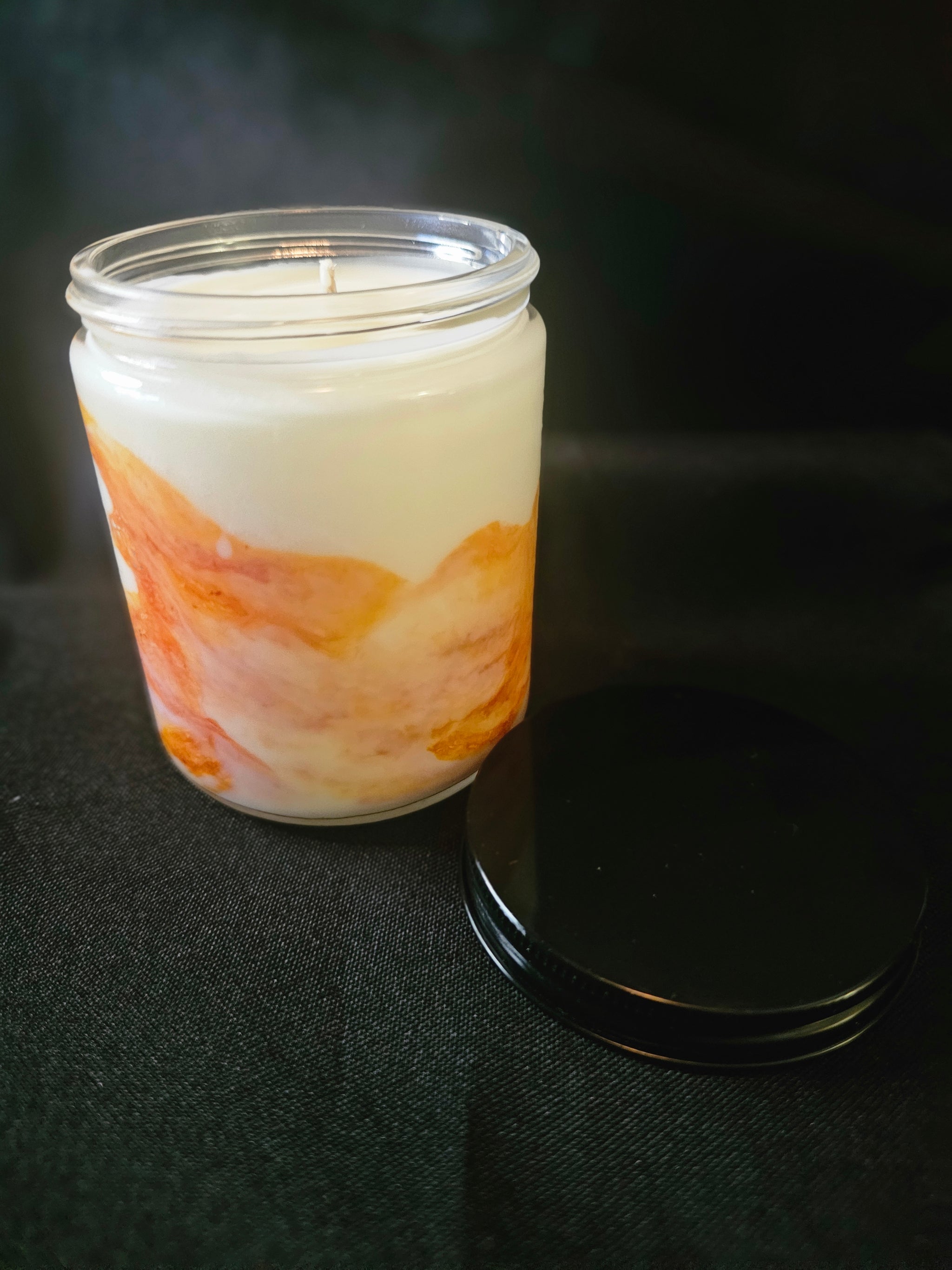 Wrap your home in the cozy sweetness of Autumn Kiss, a warm blend of cranberry, apple, and gentle spice. The orange and white marble-effect wax captures the beauty and nostalgia of fall in every swirl.